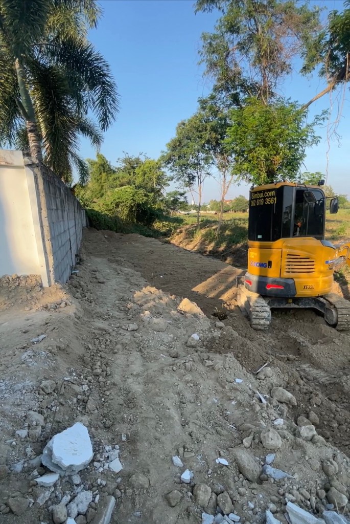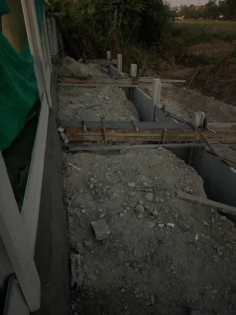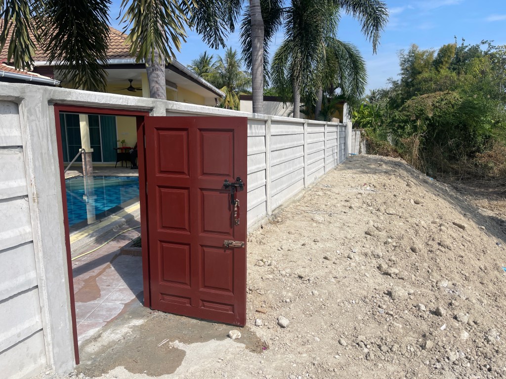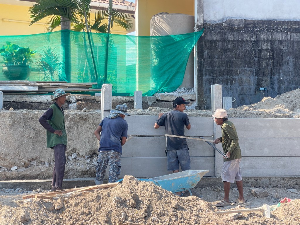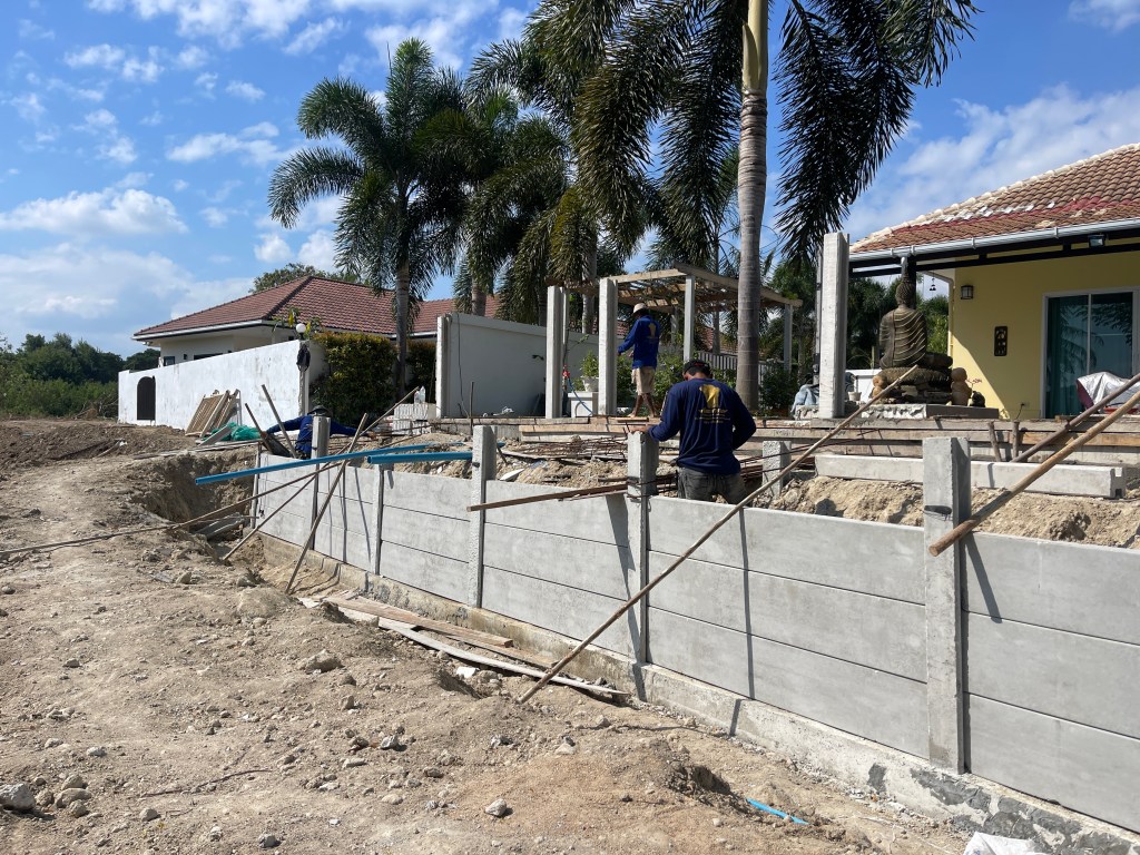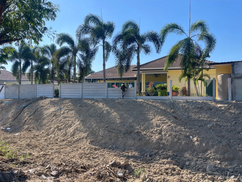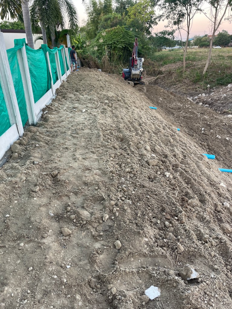 ถมดิน+กำแพงกันดิน+ดึงสเตย์+รั้วสำเร็จรูป