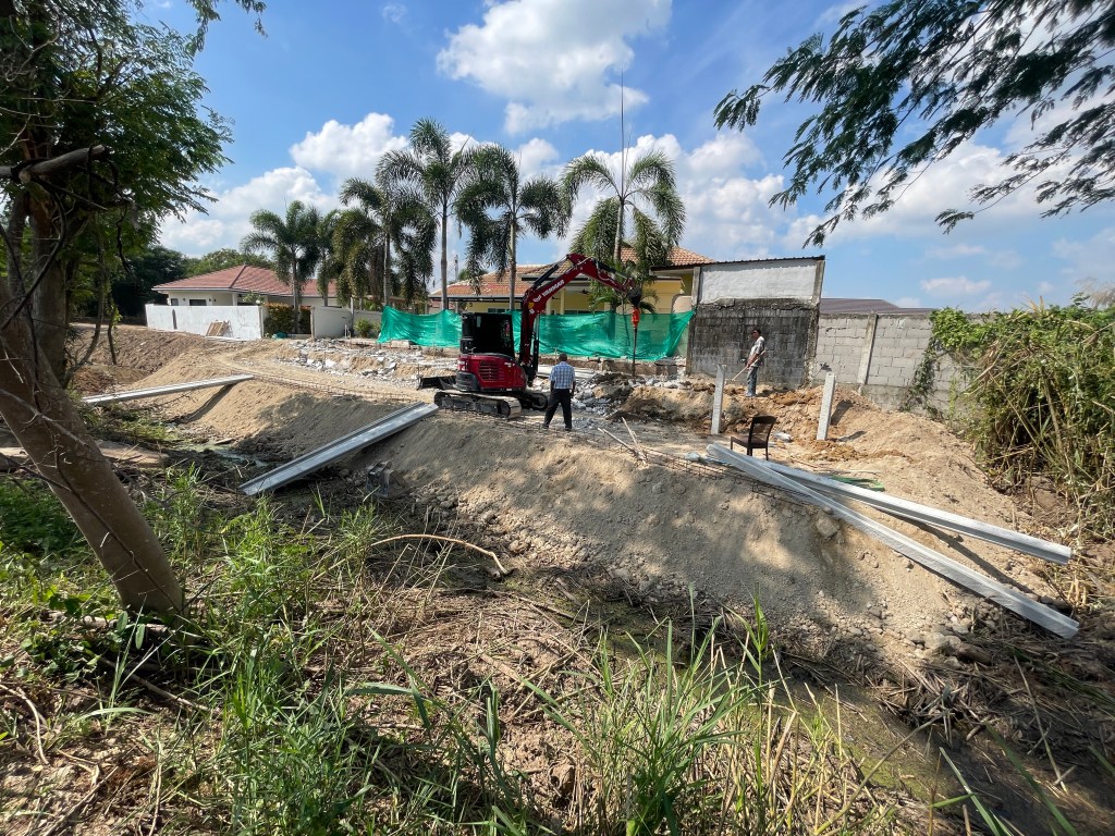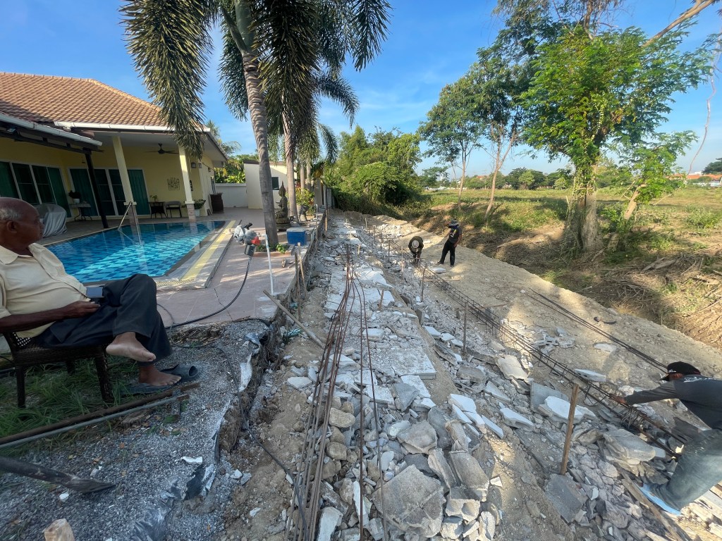 ⛑️รับทำในหัวหิน-ชะอำ-ปราณบุรี 🦠ถมดิน กดเข็ม เทคาน วางแผ่น ดึงสเตย์ แข็งแรงทนทาน ป้องกันดินสไลด์ ไม่ให้ตัวบ้านทรุด