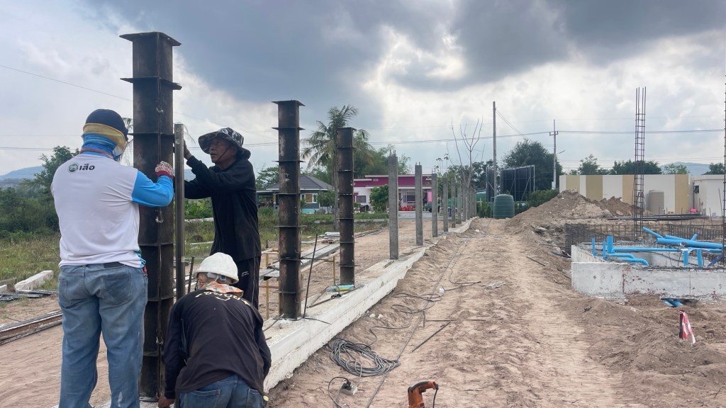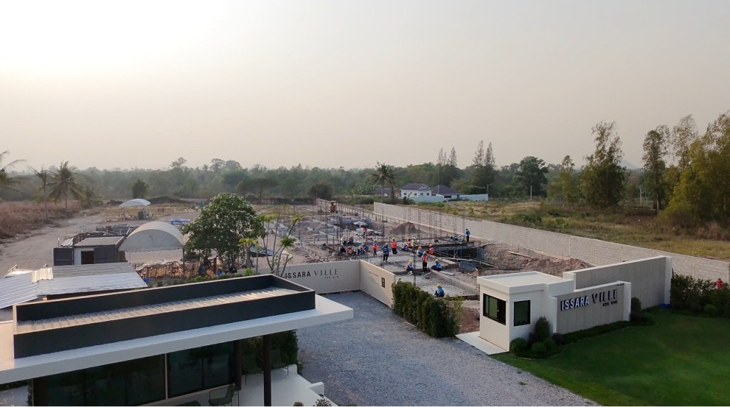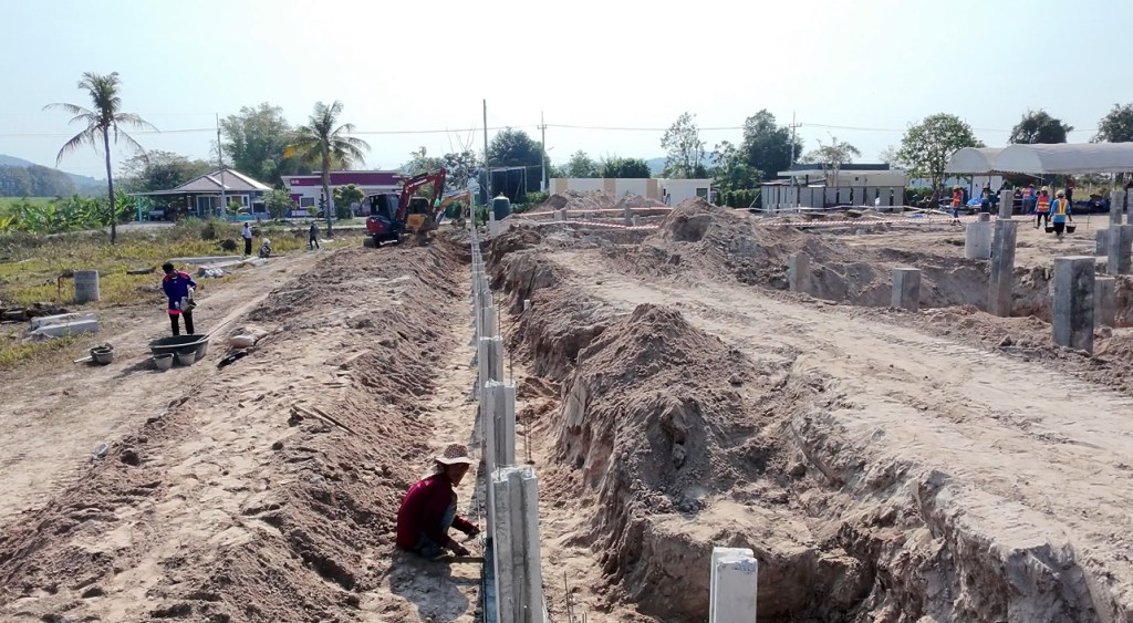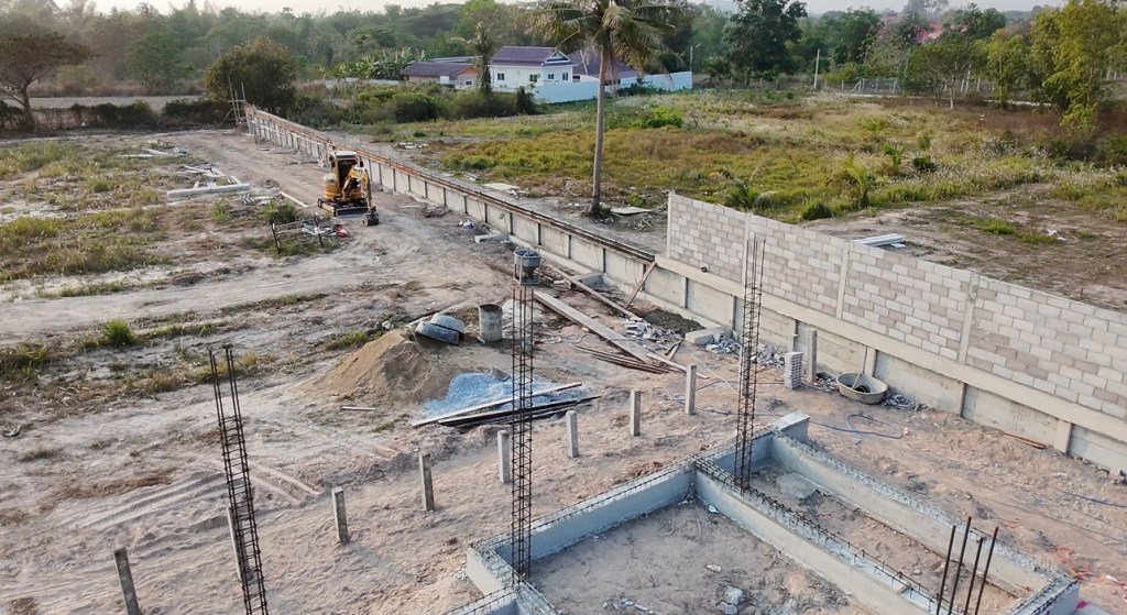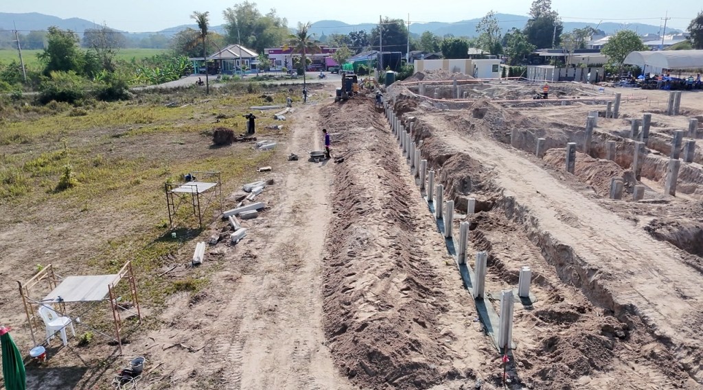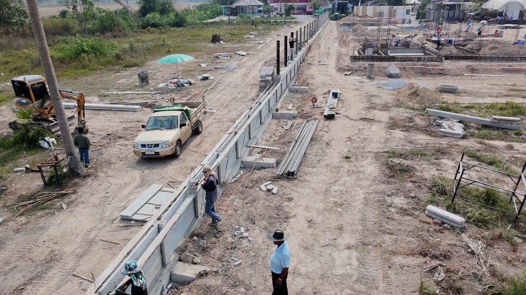 issara village อิสระวิลเลจ🧧ระยะเวลาก่อสร้าง 4 เดือน กับกำแพงกันดินi แบบเสียบแผ่น รวมความยาว 340 เมตร สูง 1.5-2 เมตร รั้วก่อฉาบชุดบนสูง 2เมตร