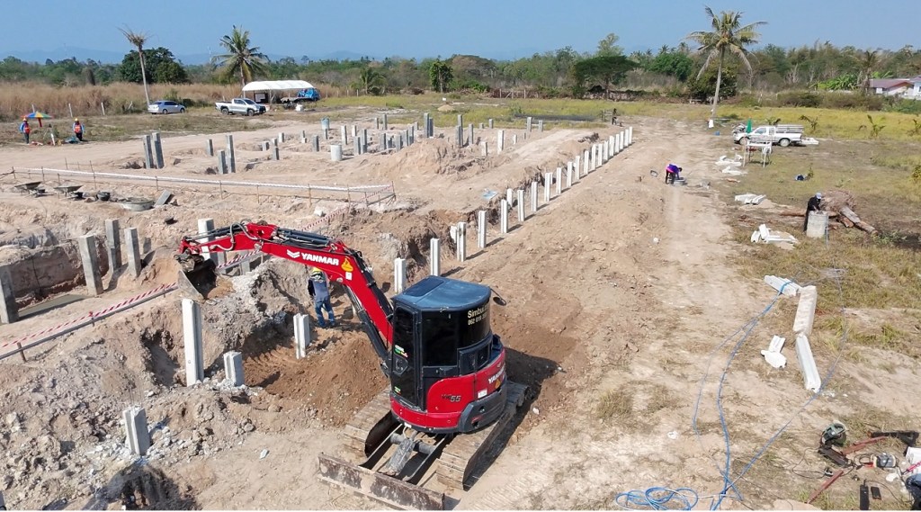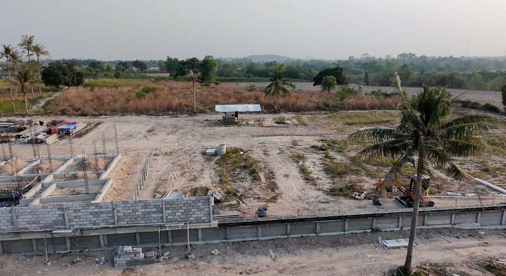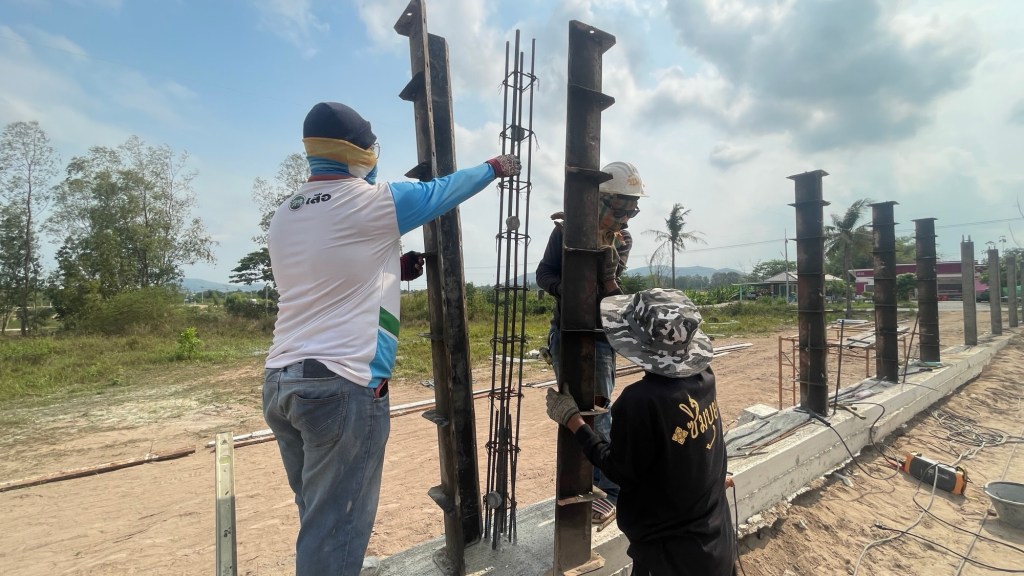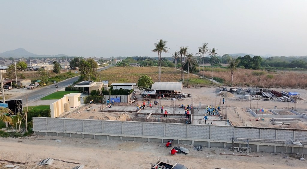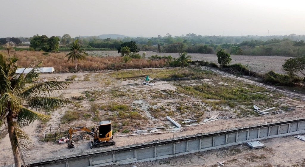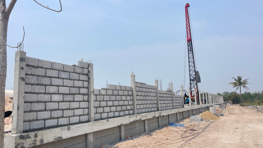 issara village อิสระวิลเลจ🧧ระยะเวลาก่อสร้าง 4 เดือน กับกำแพงกันดินi แบบเสียบแผ่น รวมความยาว 340 เมตร สูง 1.5-2 เมตร รั้วก่อฉาบชุดบนสูง 2เมตร